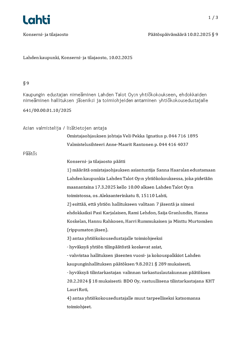 Dynasty tietopalvelu Haku RSS Lahden kaupunki