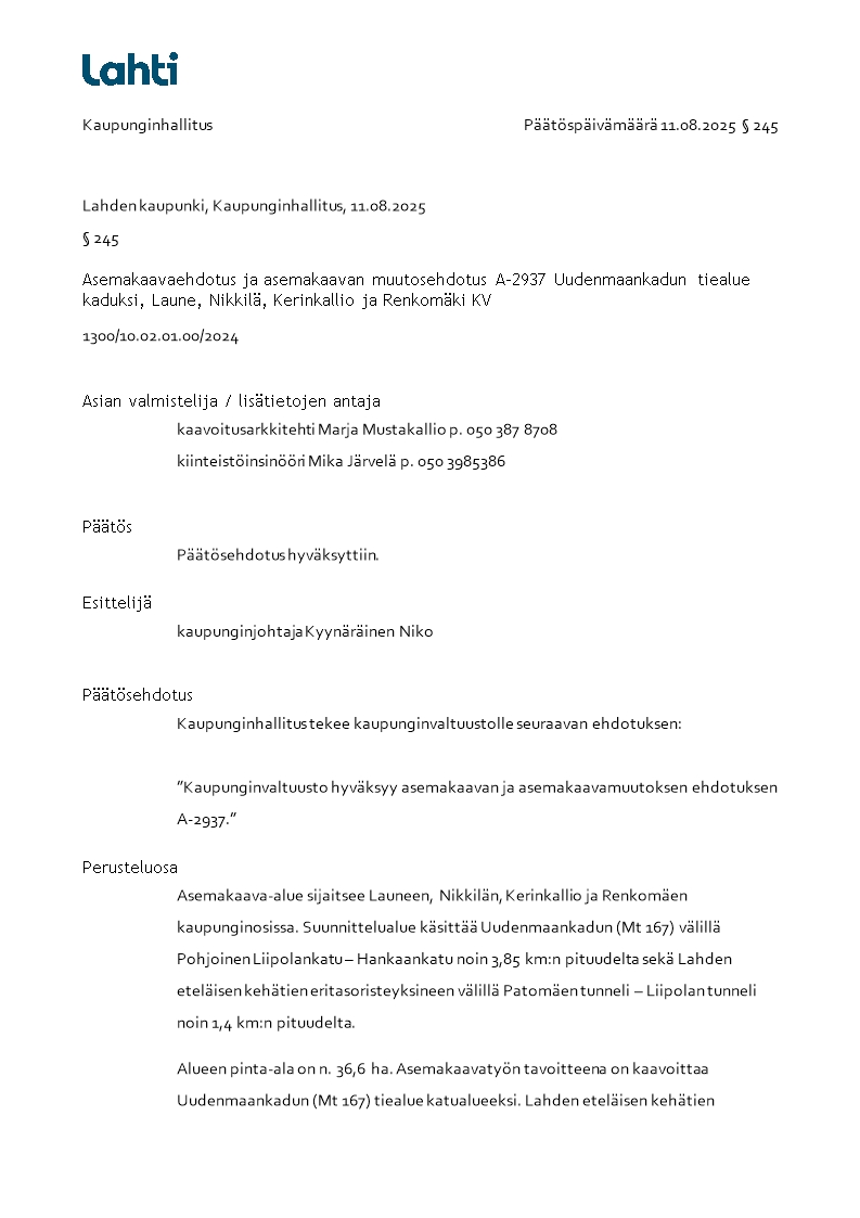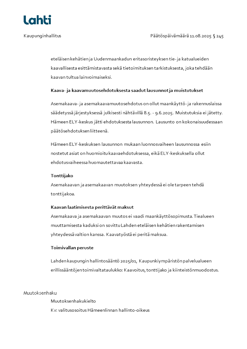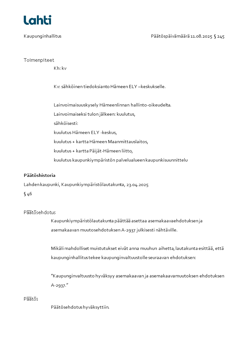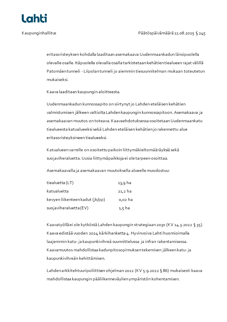 Pöytäkirja 11.08.2025/Pykälä 245