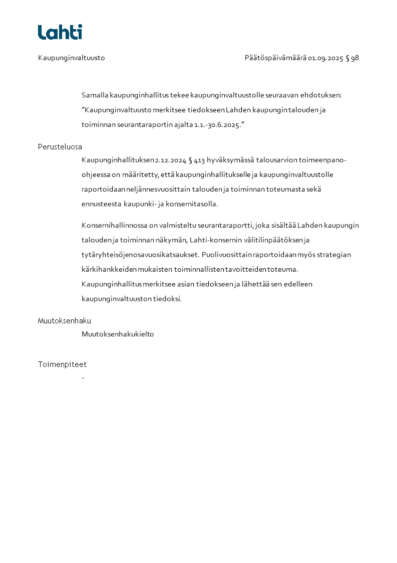Dynasty tietopalvelu Haku RSS Lahden kaupunki