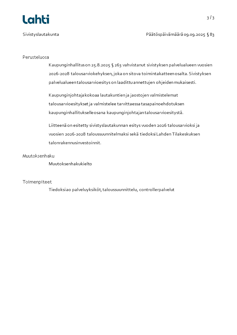 | Talousarvioehdotus 2026 ja taloussuunnitelmaehdotus 2026-2028 | ||