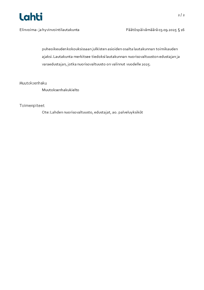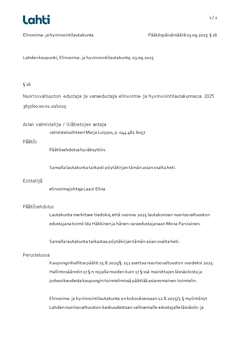 Pöytäkirja 03.09.2025/Pykälä 16
