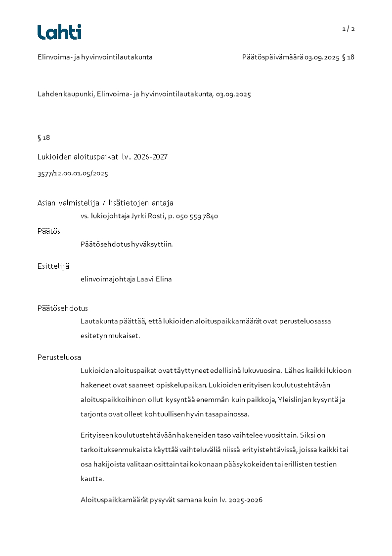 Pöytäkirja 03.09.2025/Pykälä 18