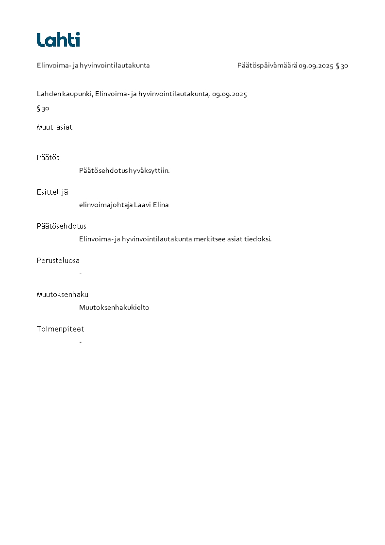 Pöytäkirja 09.09.2025/Pykälä 30