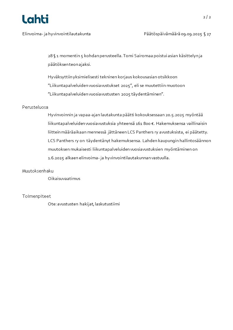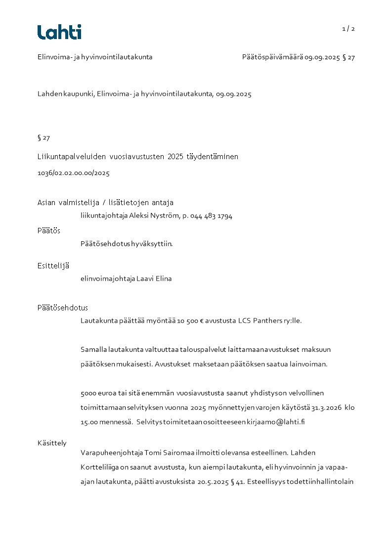 Pöytäkirja 09.09.2025/Pykälä 27