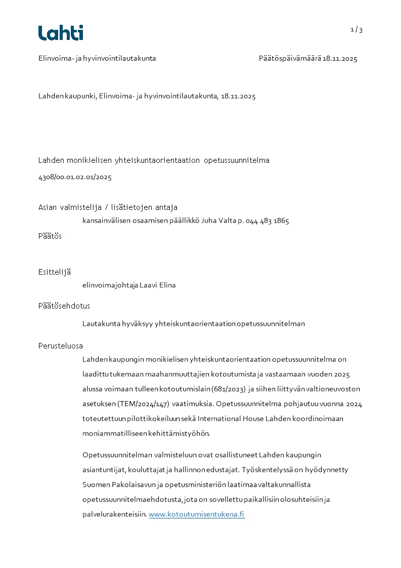 Yhteiskuntaorientaation opetussuunnitelma