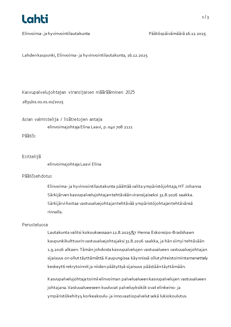 Dynasty tietopalvelu Haku RSS Lahden kaupunki