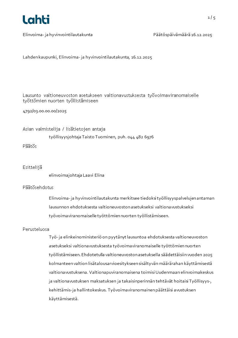 Dynasty tietopalvelu Haku RSS Lahden kaupunki