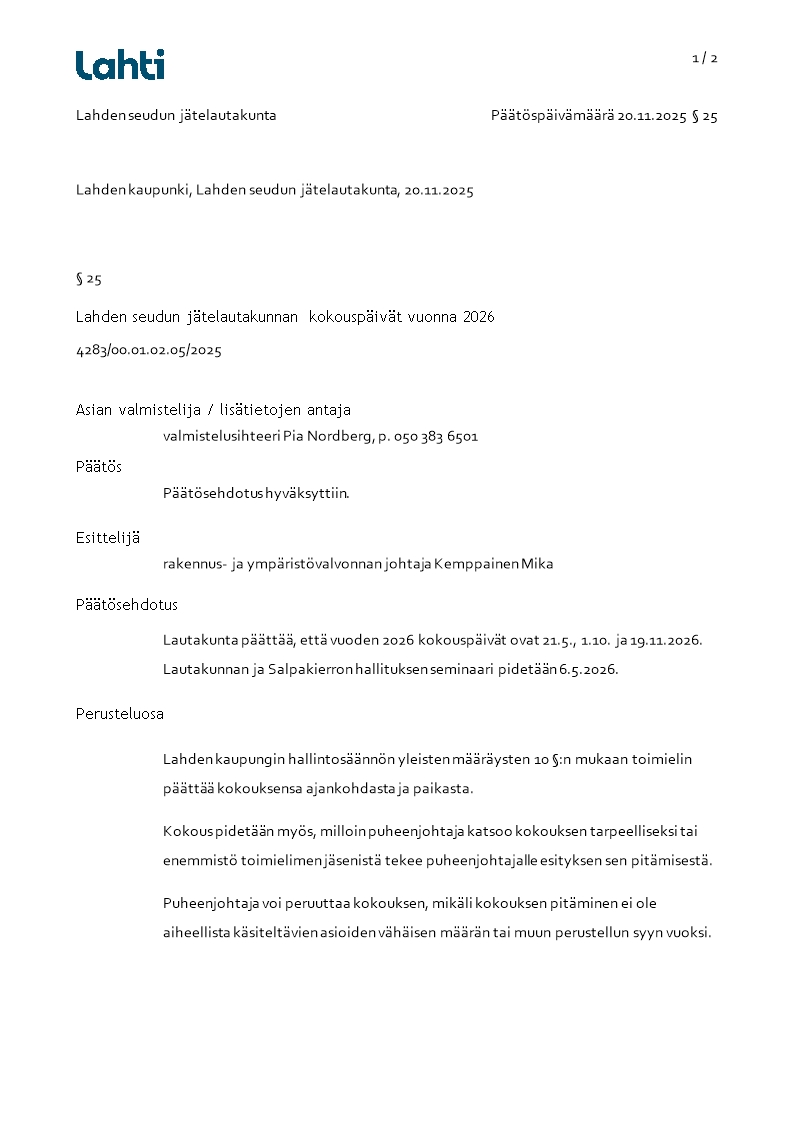 Pöytäkirja 20.11.2025/Pykälä 25