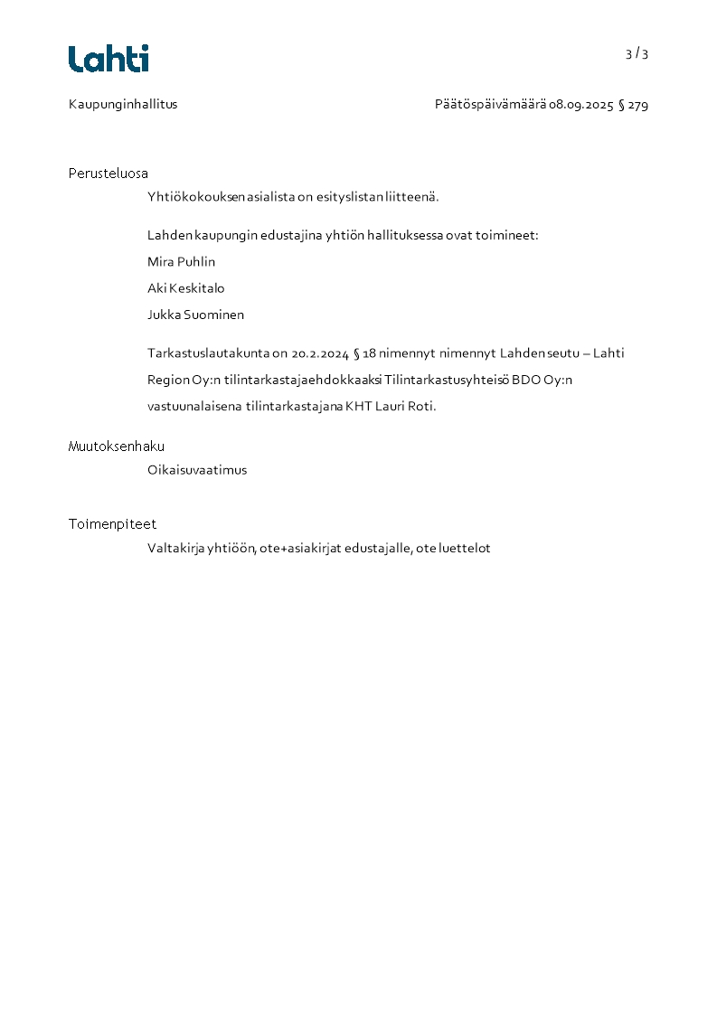 Dynasty tietopalvelu Haku RSS Lahden kaupunki