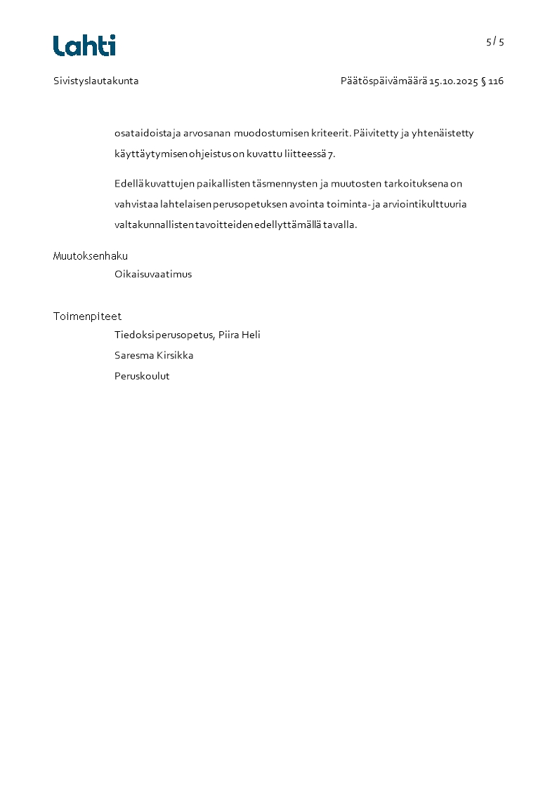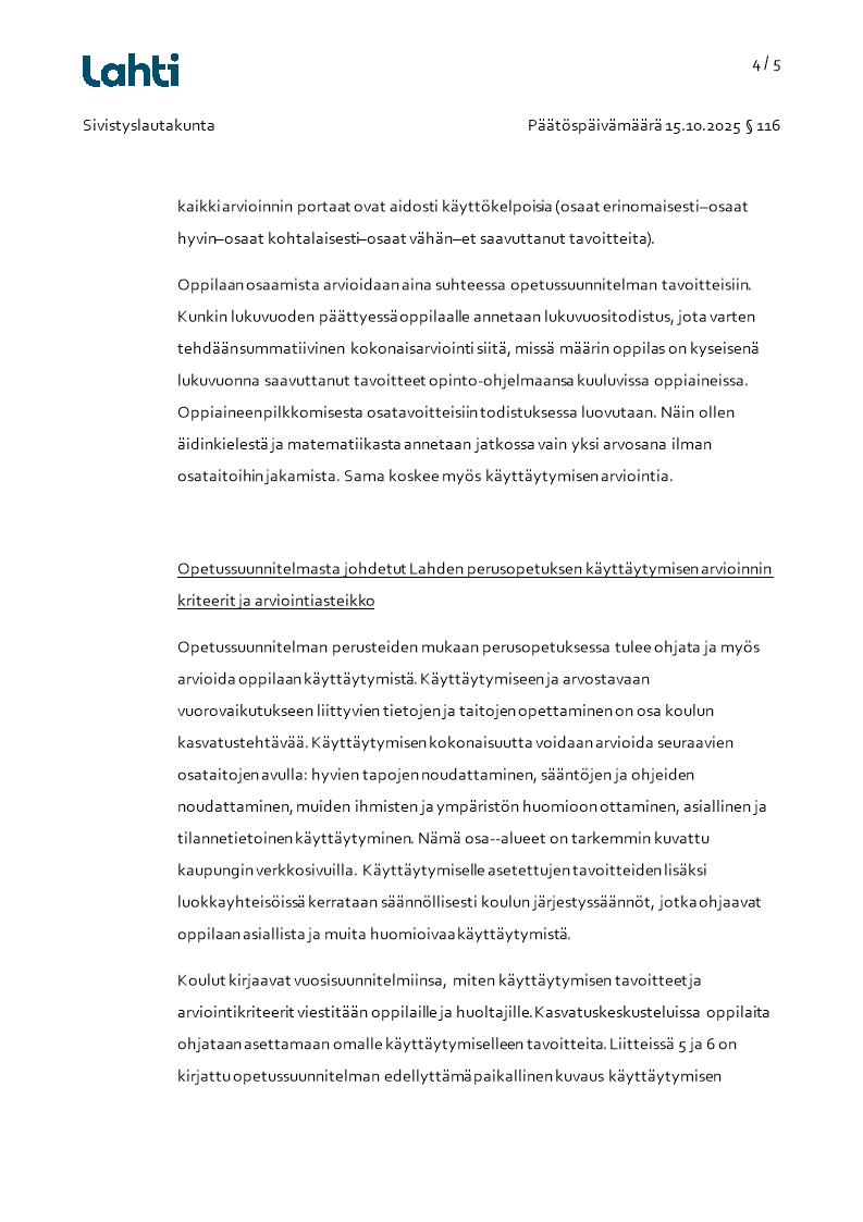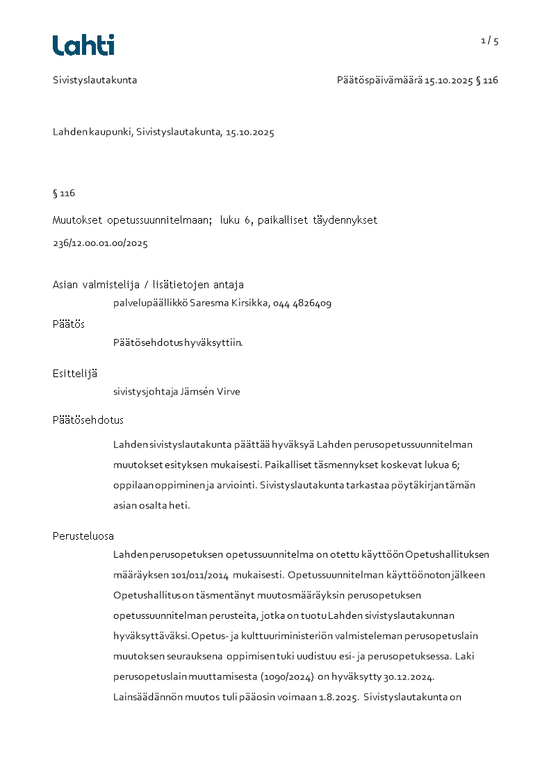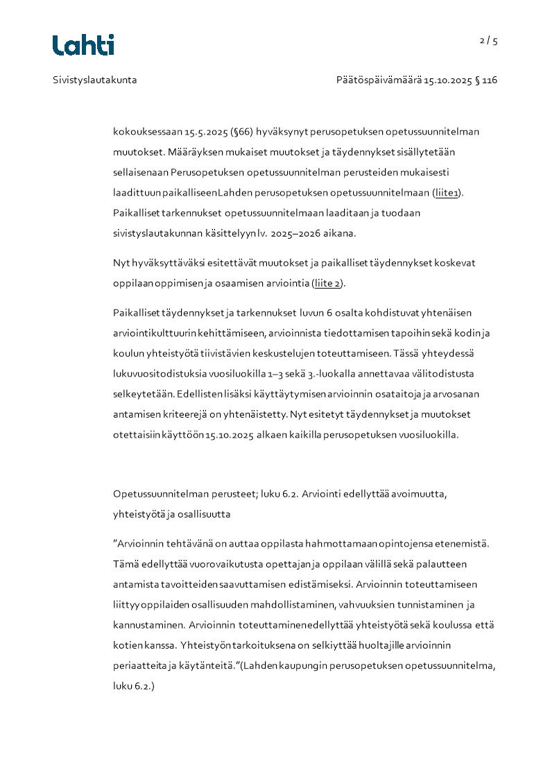 Pöytäkirja 15.10.2025/Pykälä 116