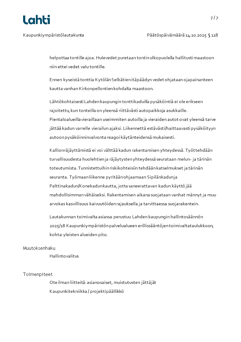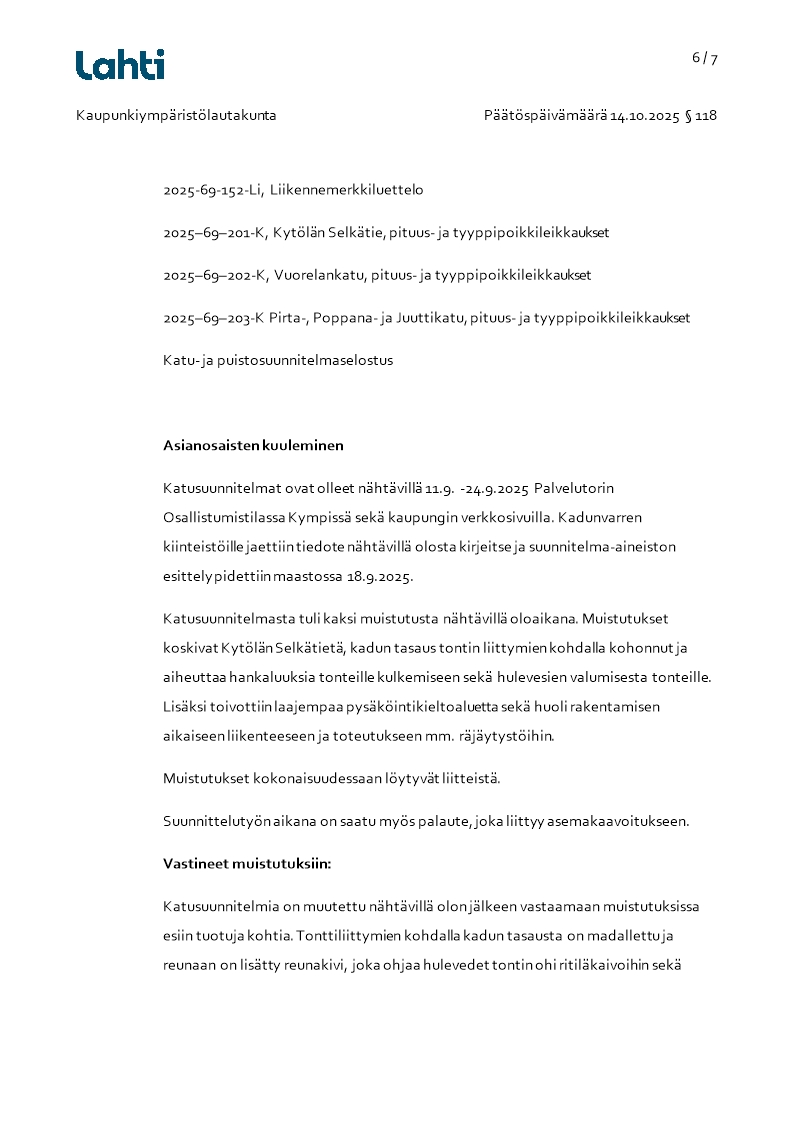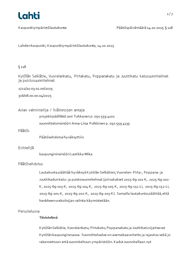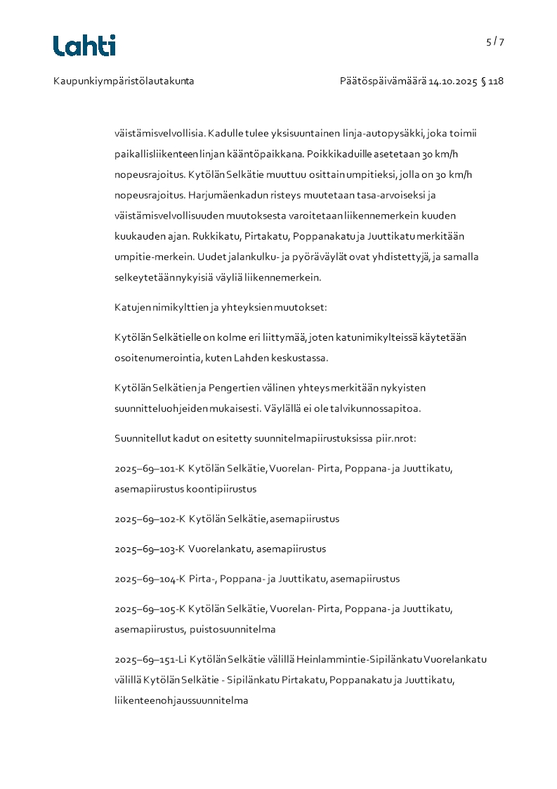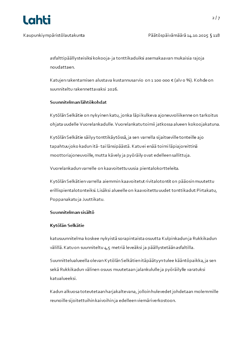 Pöytäkirja 14.10.2025/Pykälä 118