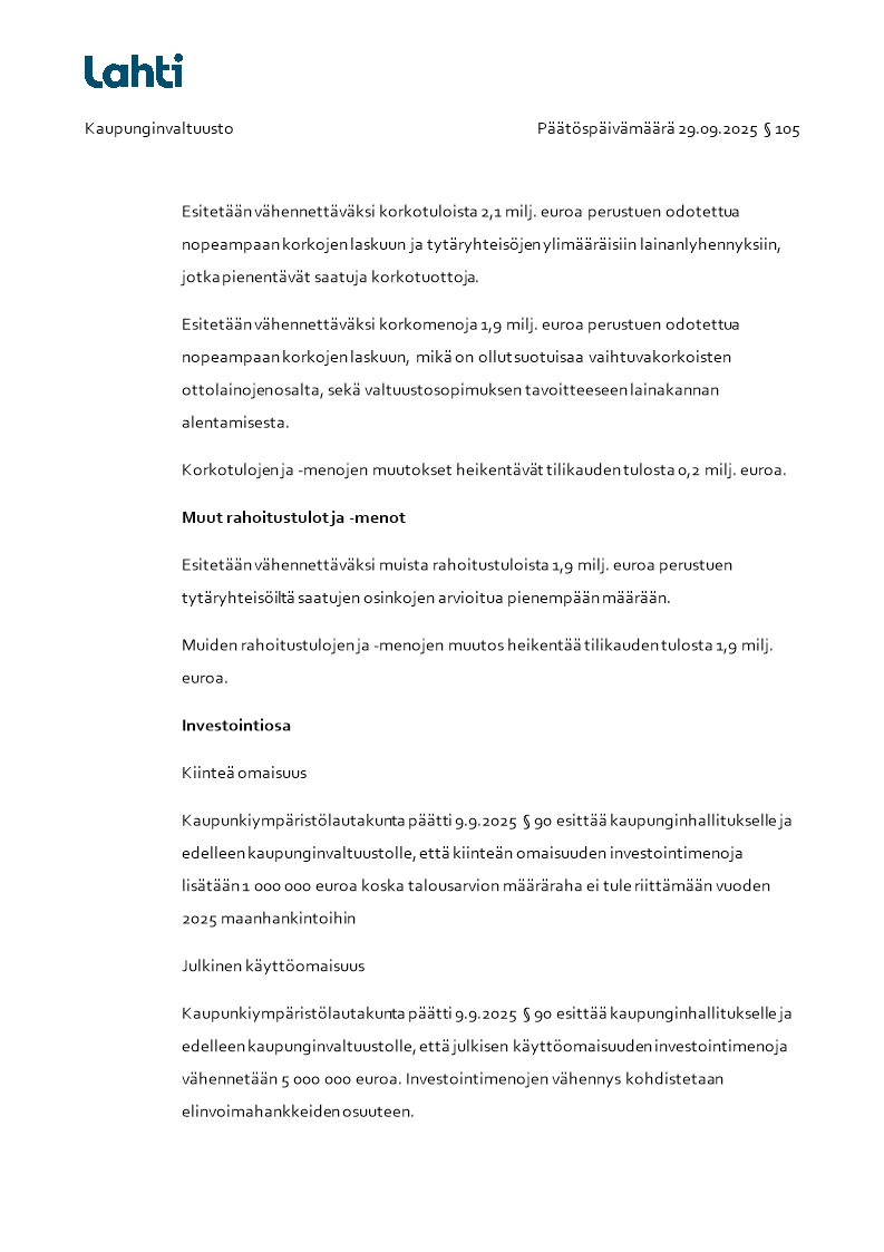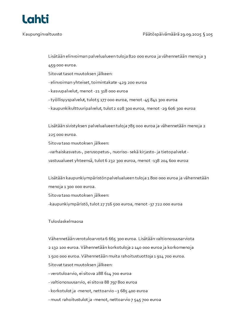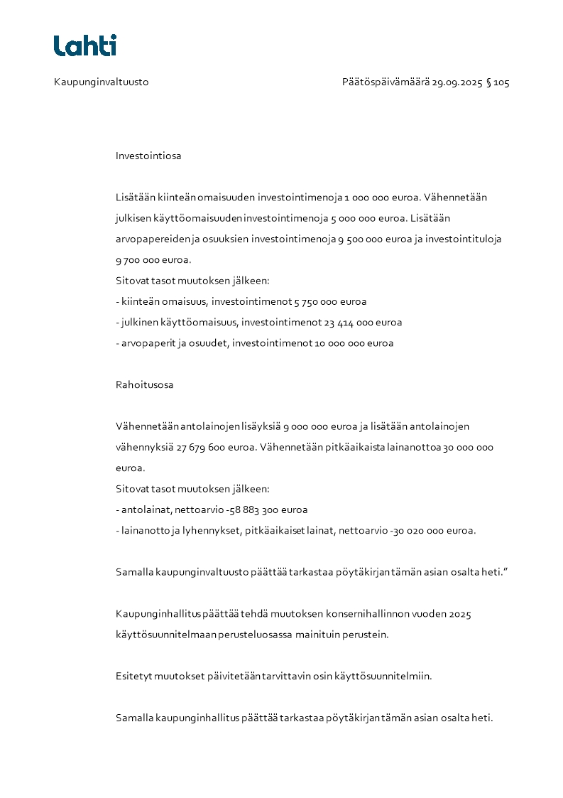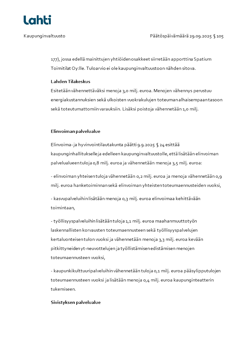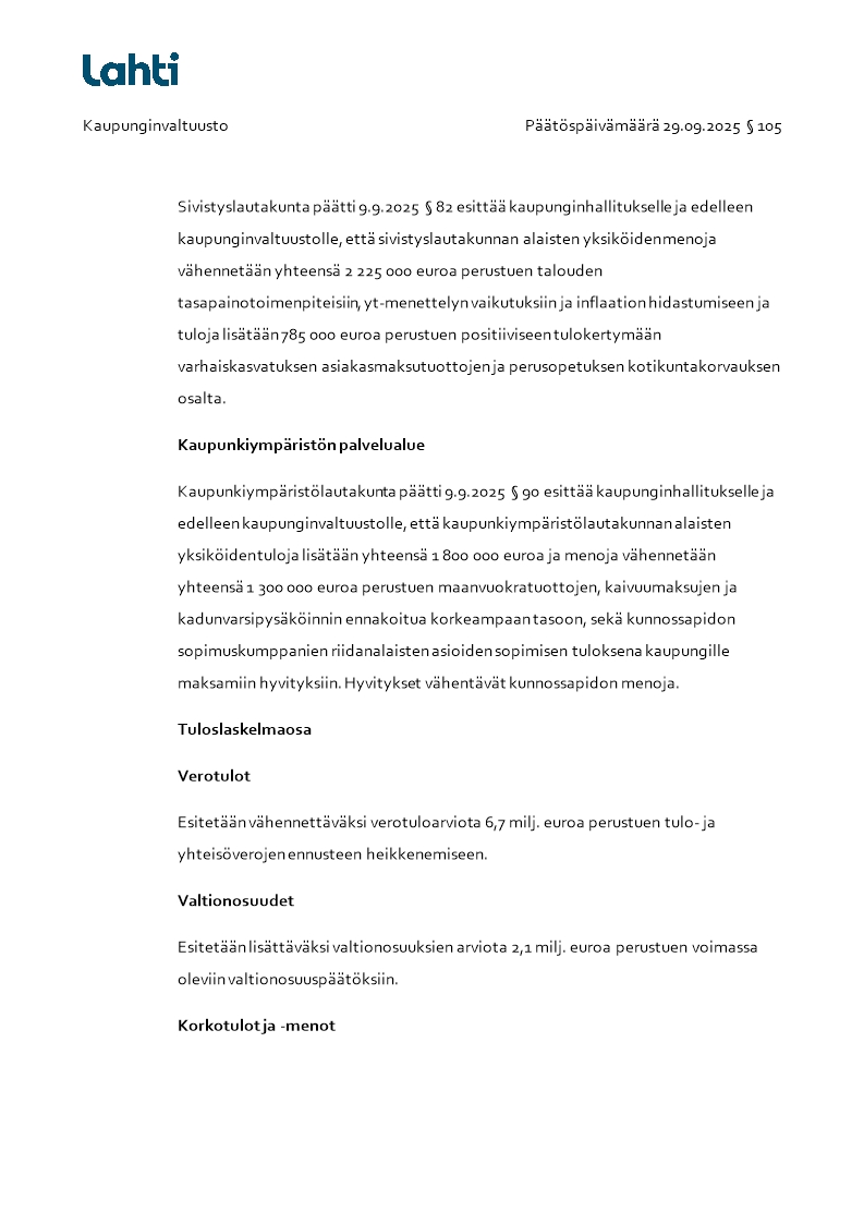 Pöytäkirja 29.09.2025/Pykälä 105