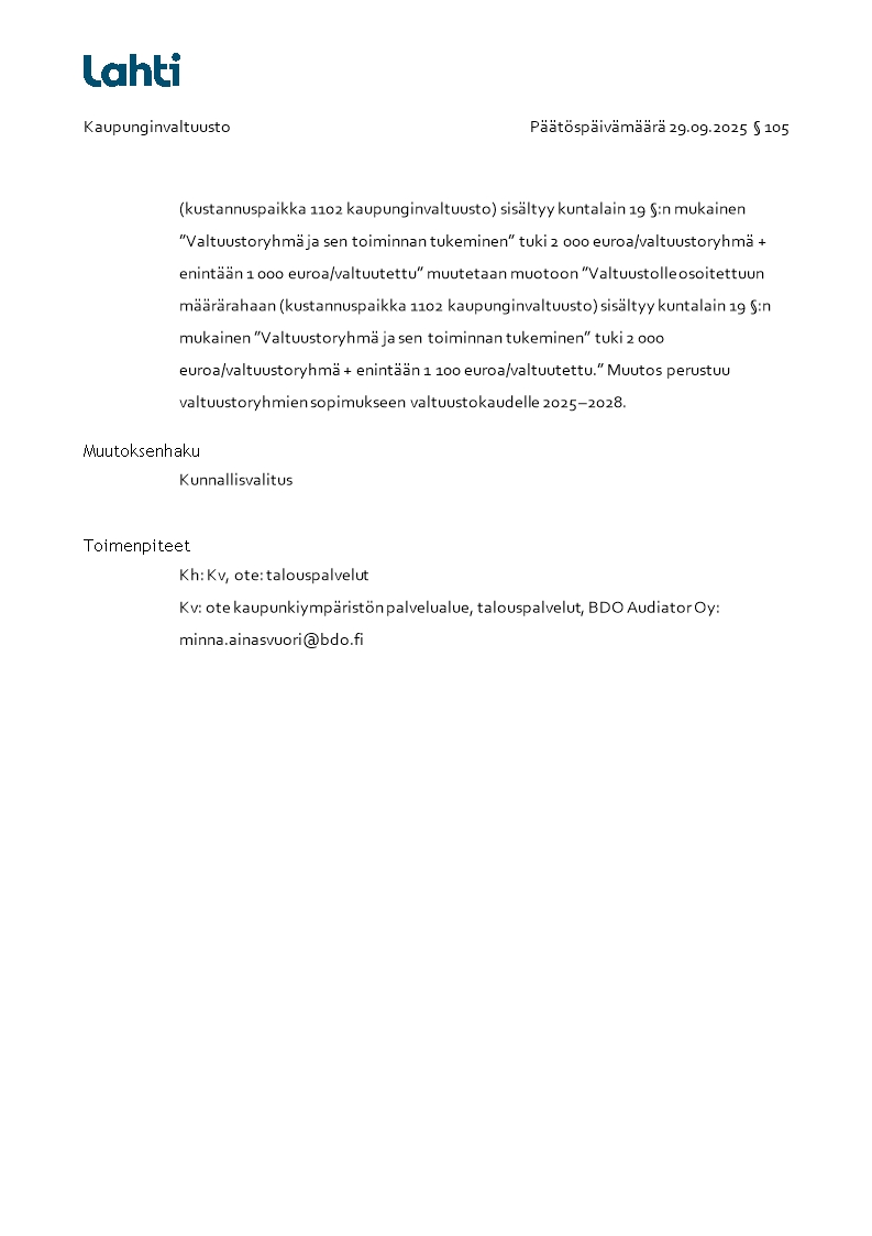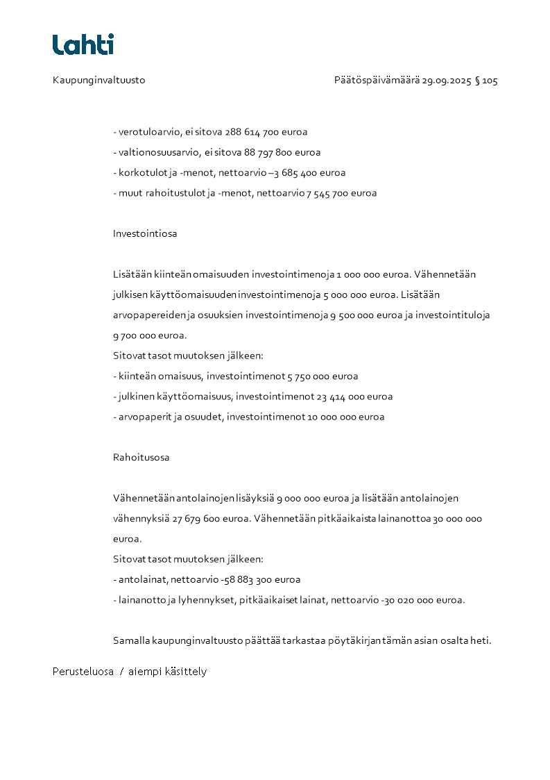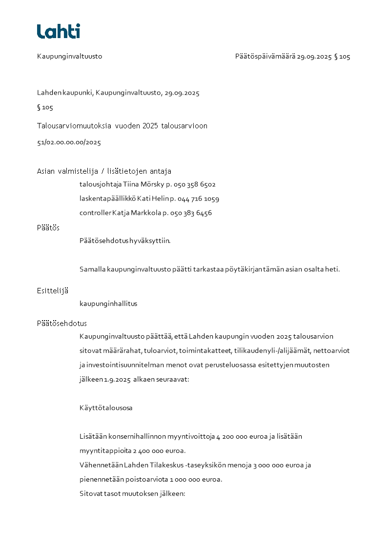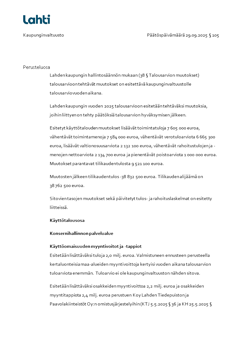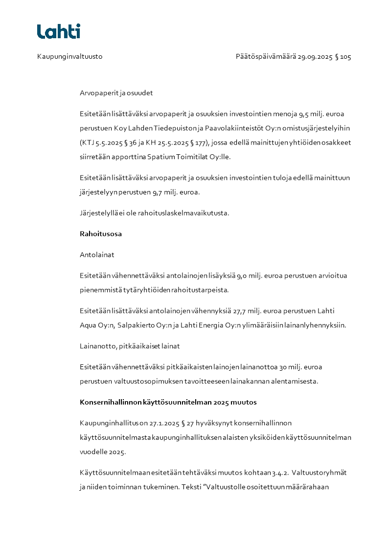 Pöytäkirja 29.09.2025/Pykälä 105