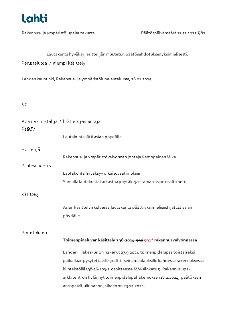 Pöytäkirja 11.11.2025/Pykälä 82