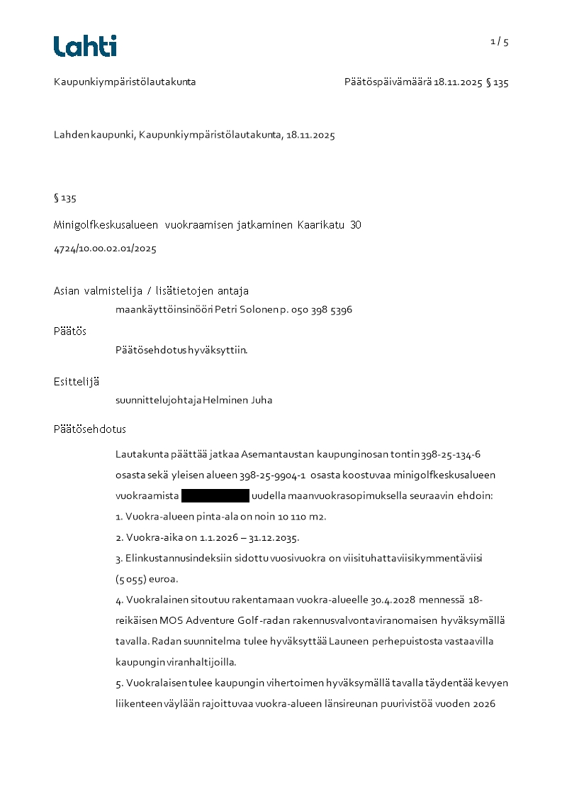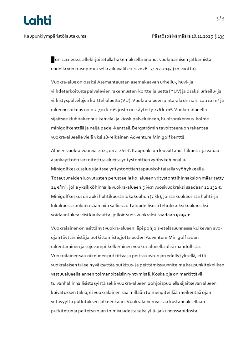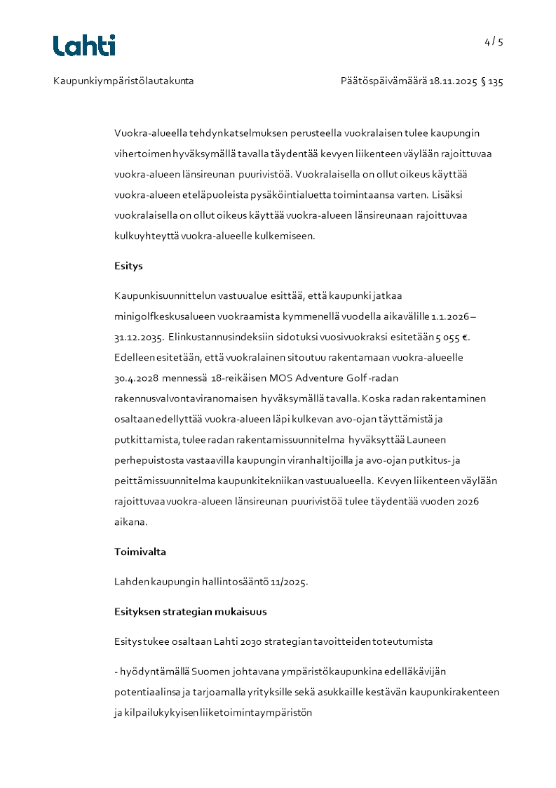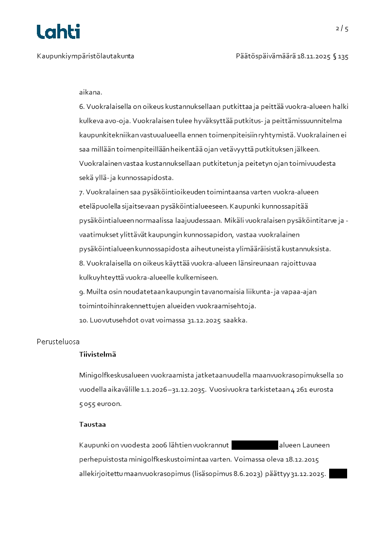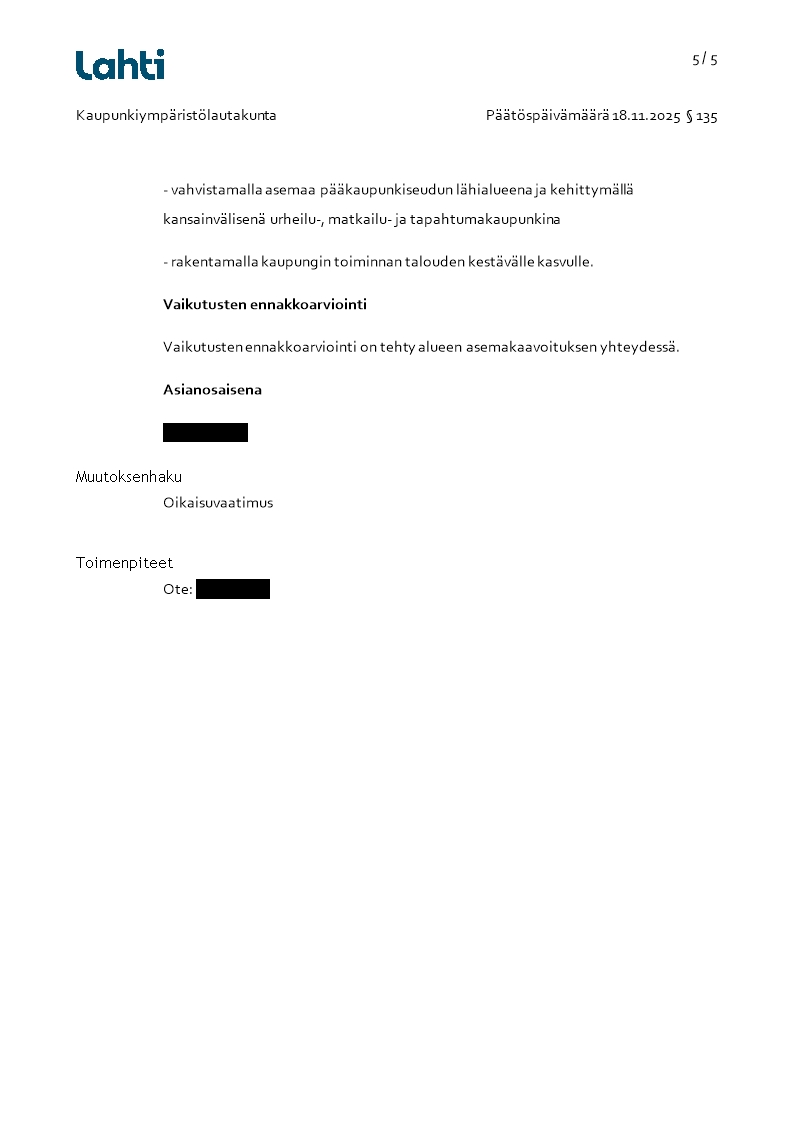 Pöytäkirja 18.11.2025/Pykälä 135