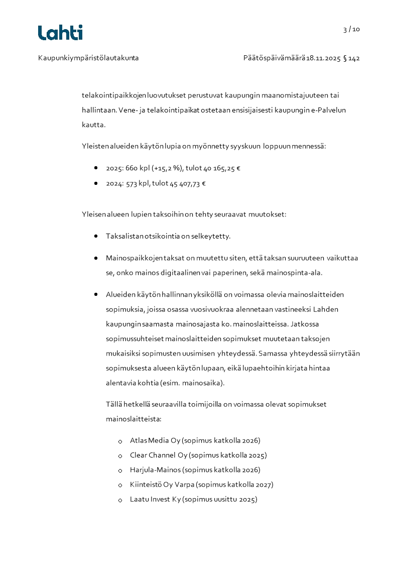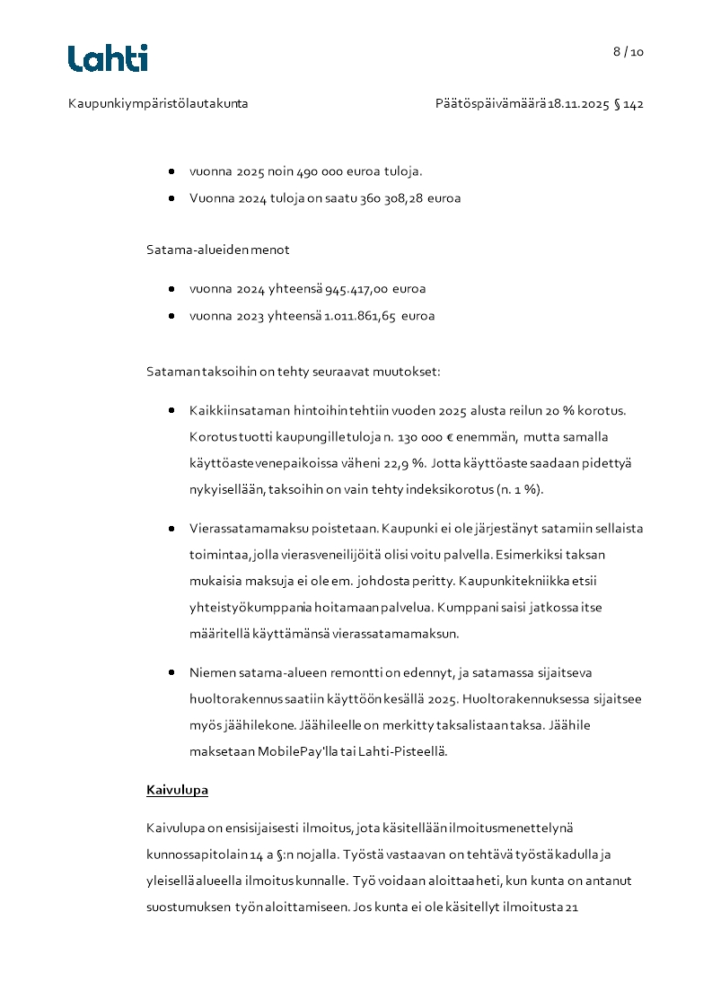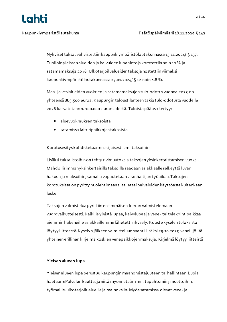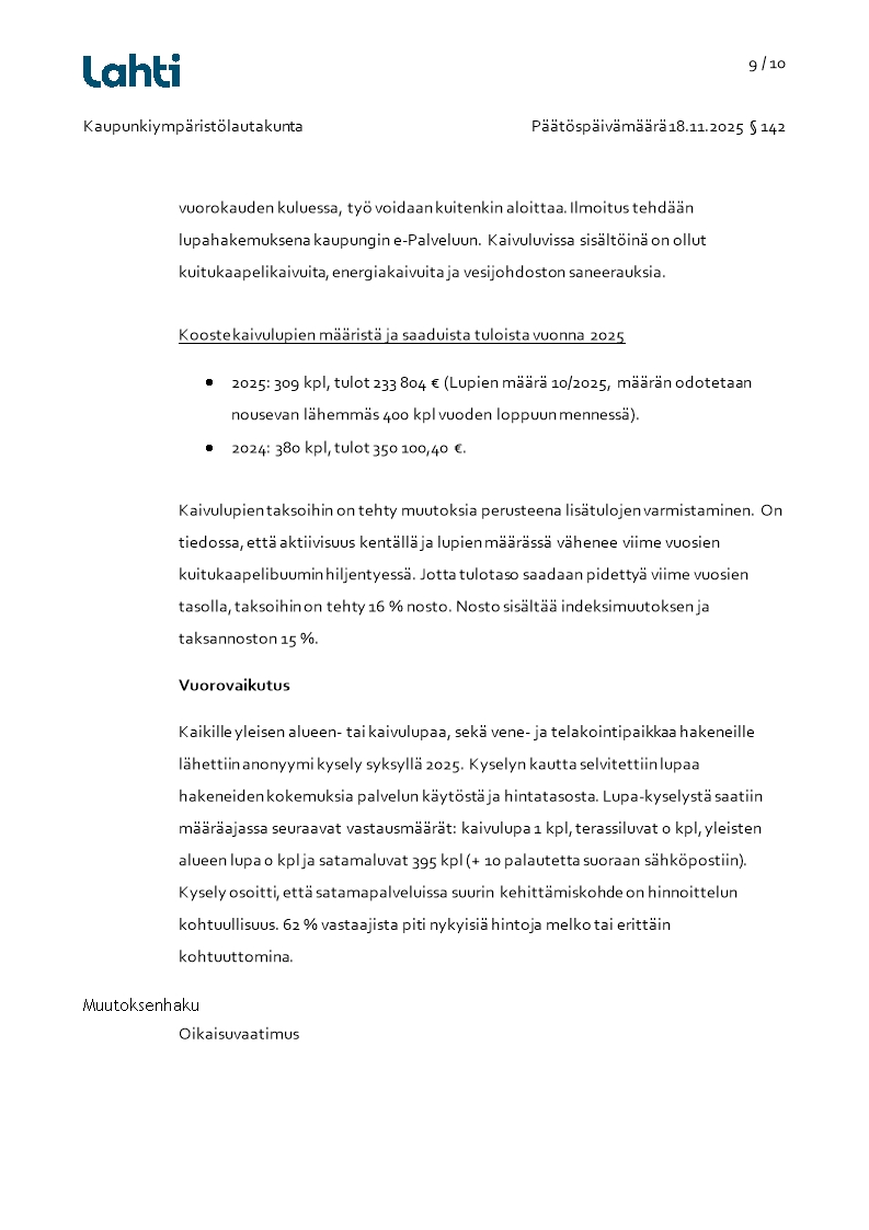 Pöytäkirja 18.11.2025/Pykälä 142