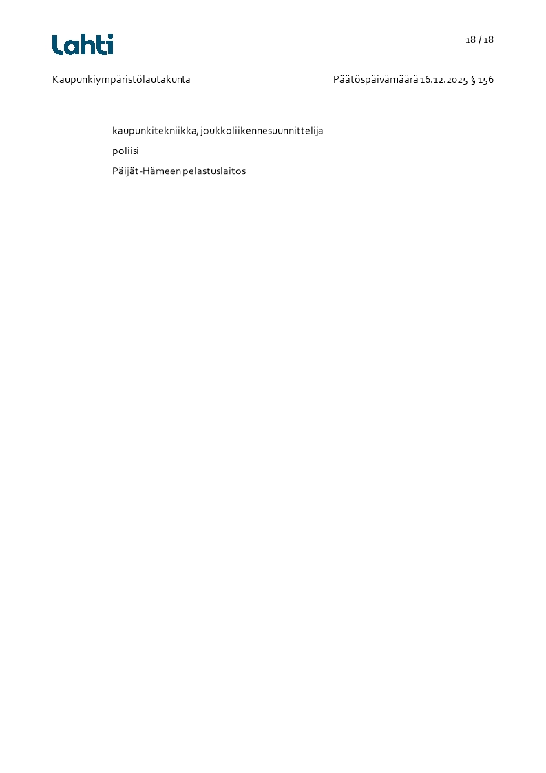 Pöytäkirja 16.12.2025/Pykälä 156