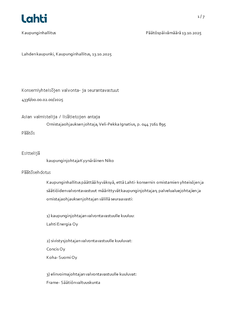 Dynasty tietopalvelu Haku RSS Lahden kaupunki