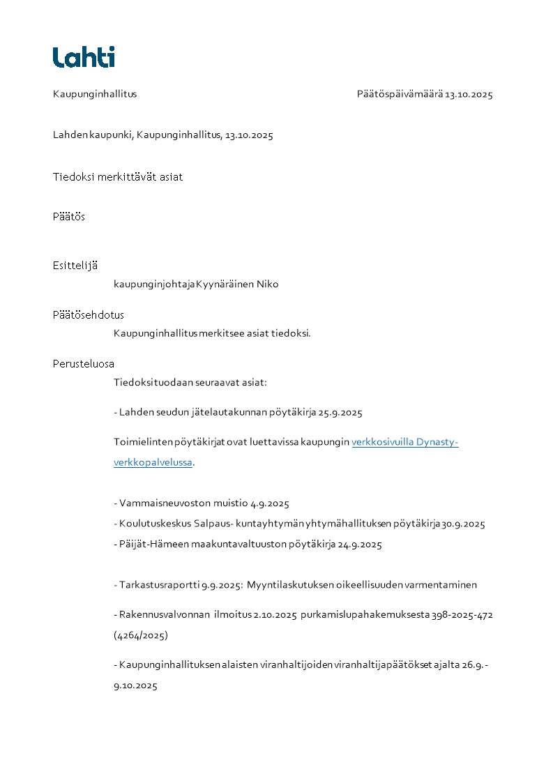 Dynasty tietopalvelu Haku RSS Lahden kaupunki