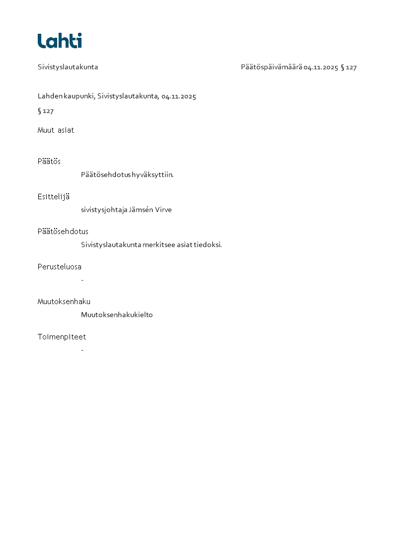 Dynasty tietopalvelu Haku RSS Lahden kaupunki