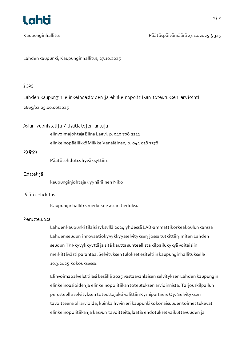 Dynasty tietopalvelu Haku RSS Lahden kaupunki