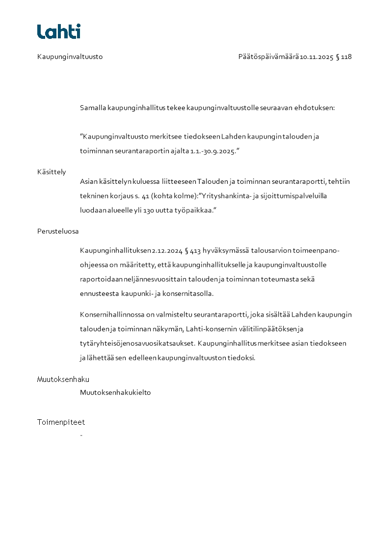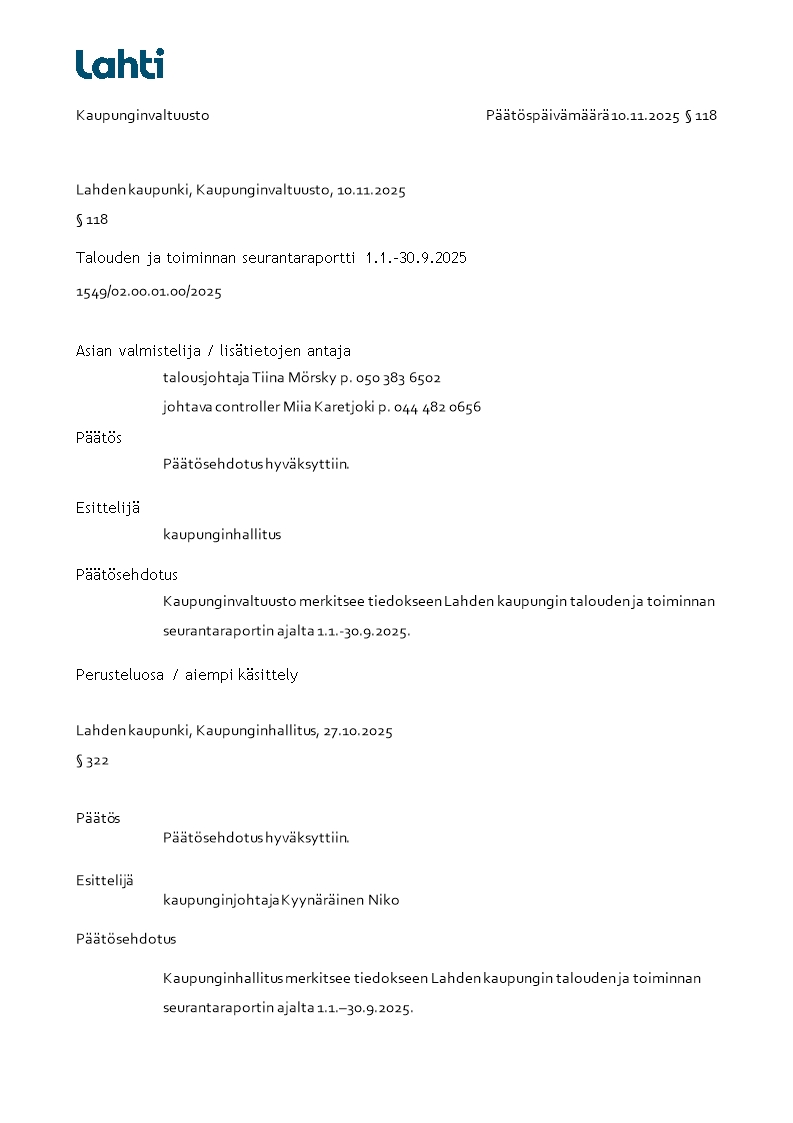 Dynasty tietopalvelu Haku RSS Lahden kaupunki