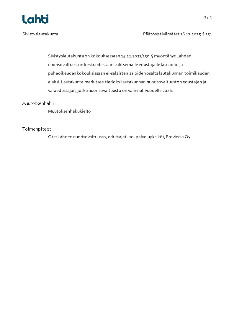 Dynasty tietopalvelu Haku RSS Lahden kaupunki