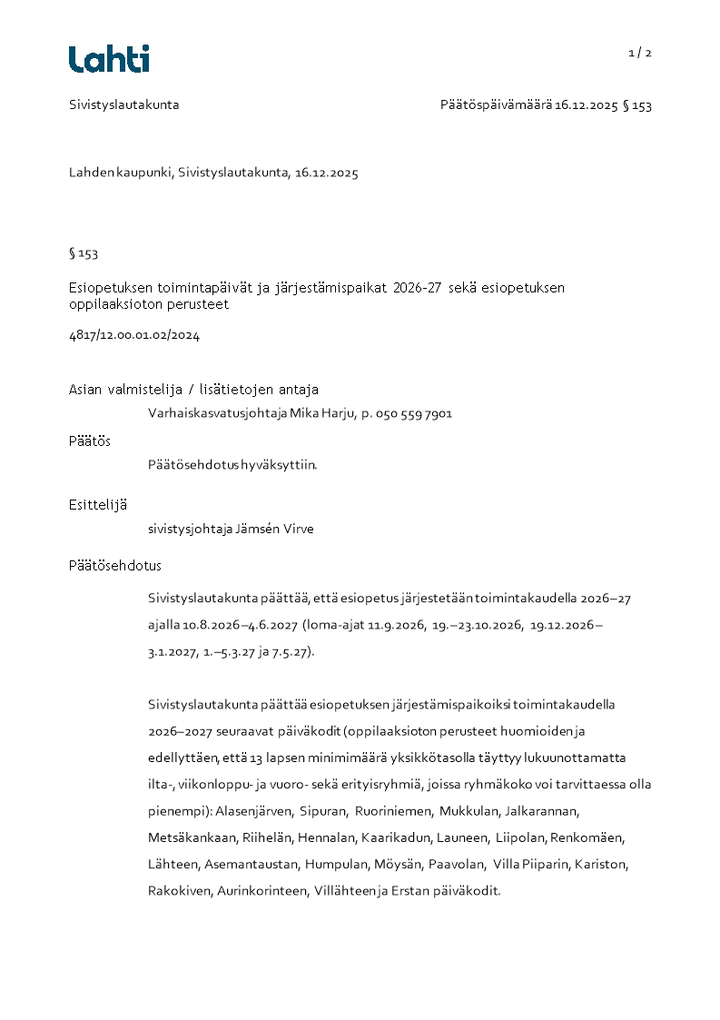 Dynasty tietopalvelu Haku RSS Lahden kaupunki