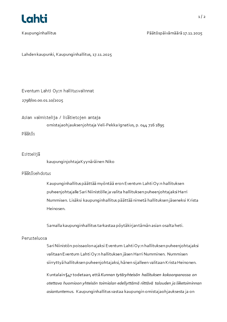 Dynasty tietopalvelu Haku RSS Lahden kaupunki