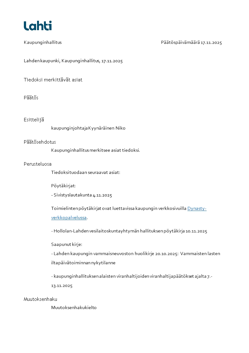 Kokousasiat:https://lahti-prod.oncloudos.com:443/cgi/DREQUEST.PHP?page=rss/meetingitems&show=30