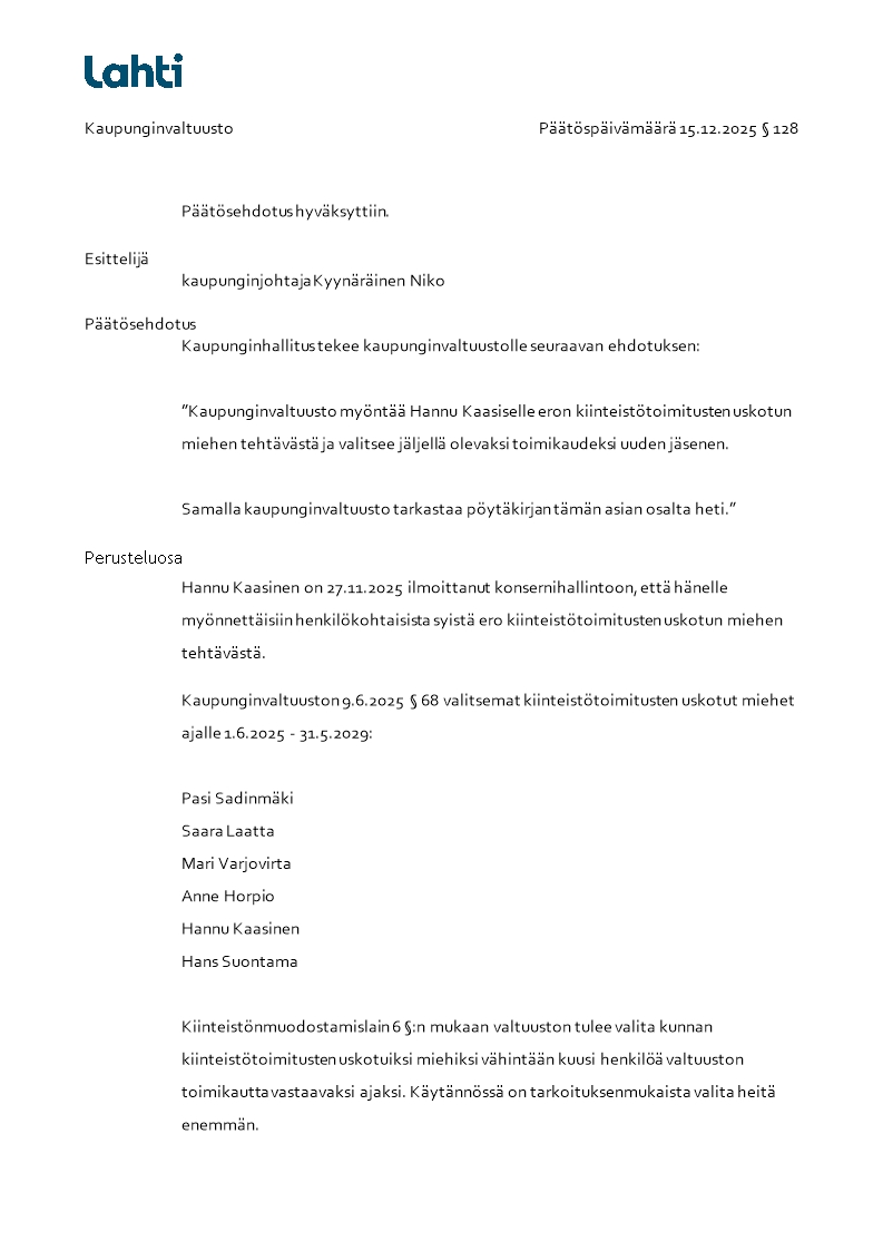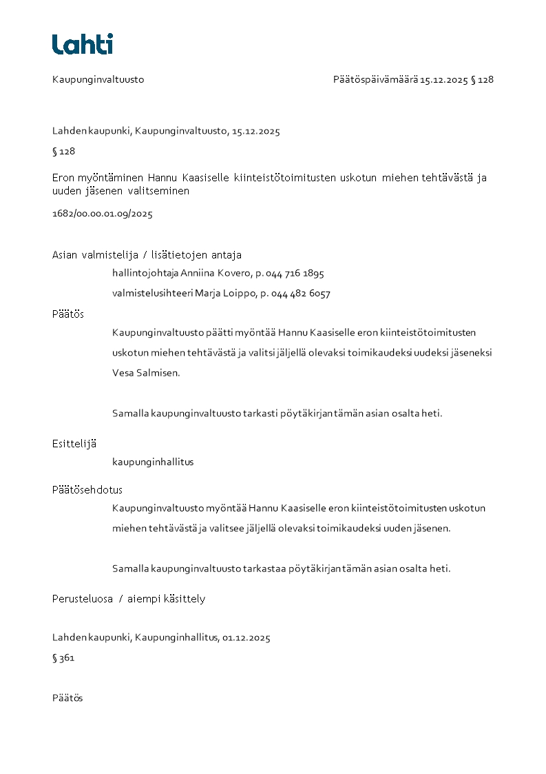 Dynasty tietopalvelu Haku RSS Lahden kaupunki