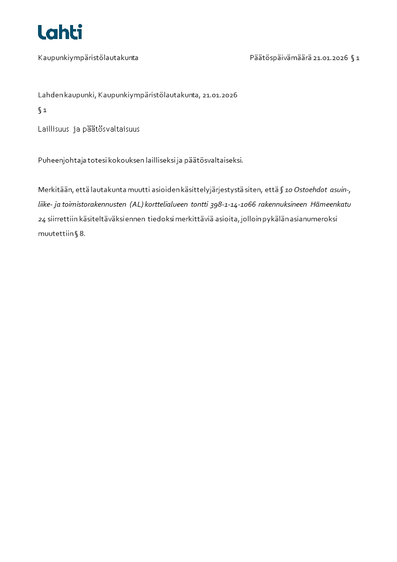 Pöytäkirja 21.01.2026/Pykälä 1