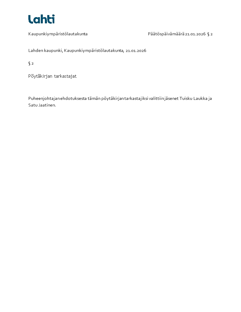 Pöytäkirja 21.01.2026/Pykälä 2