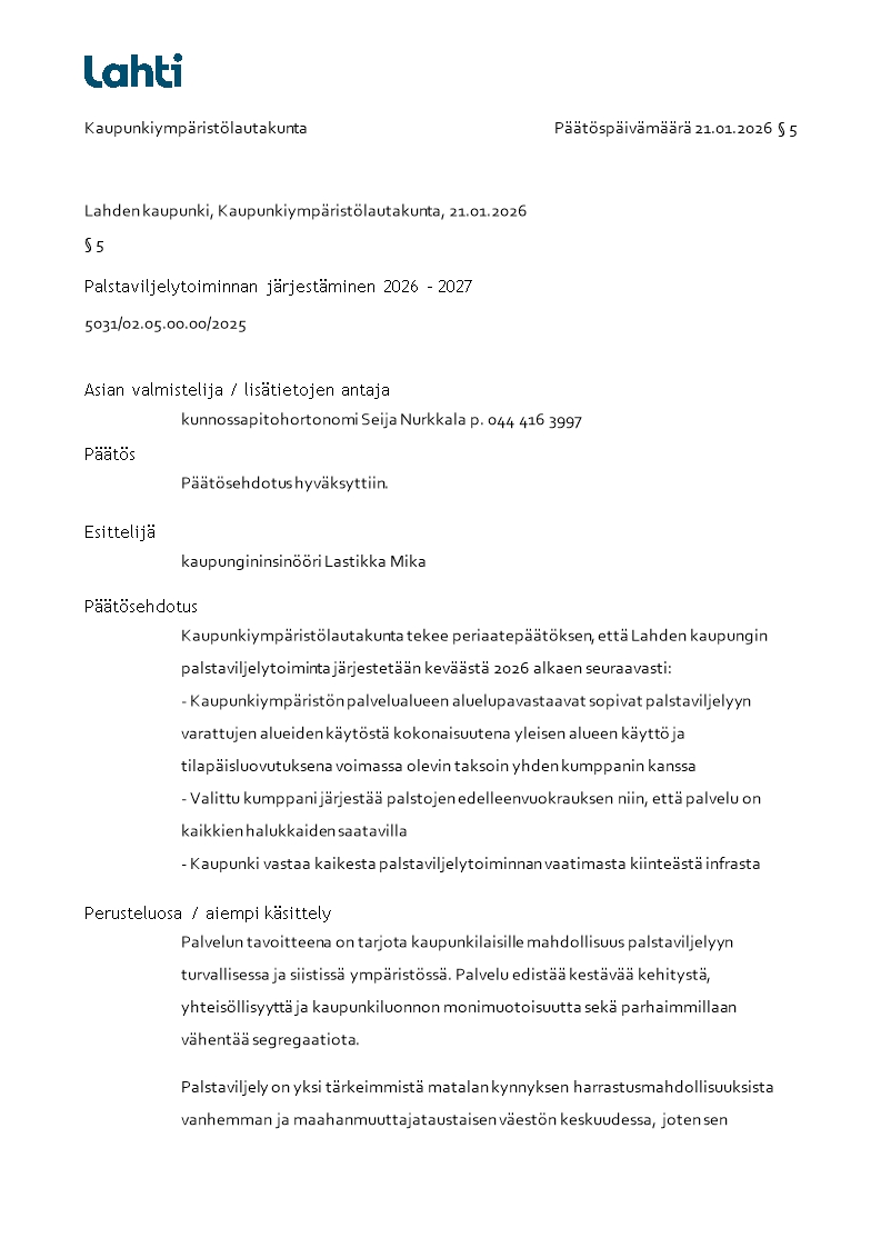 Dynasty tietopalvelu Haku RSS Lahden kaupunki