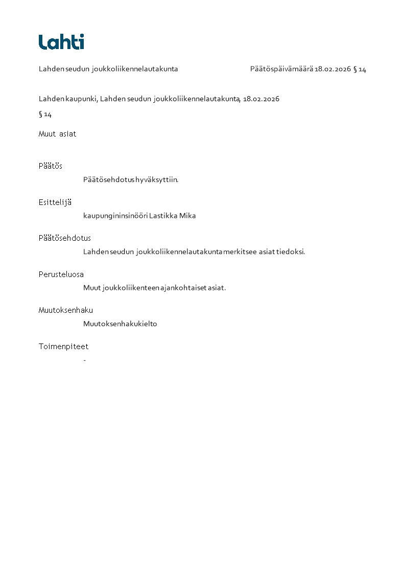 Pöytäkirja 18.02.2026/Pykälä 14