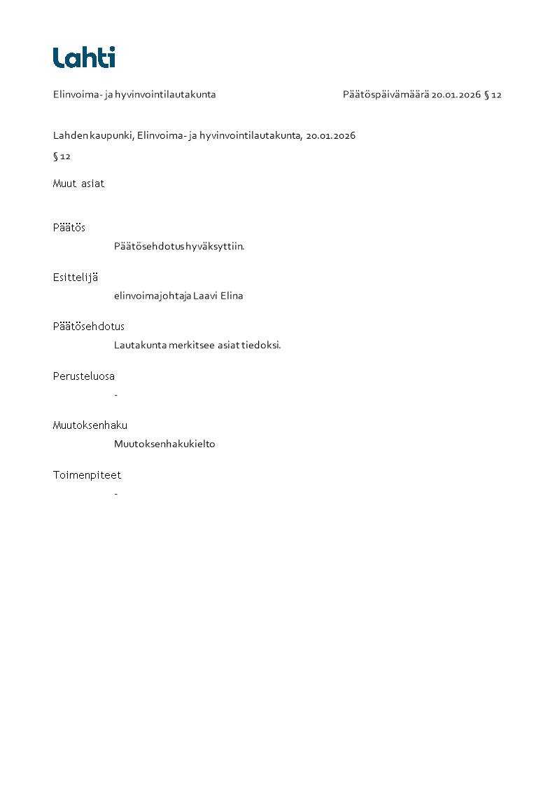 Pöytäkirja 20.01.2026/Pykälä 12