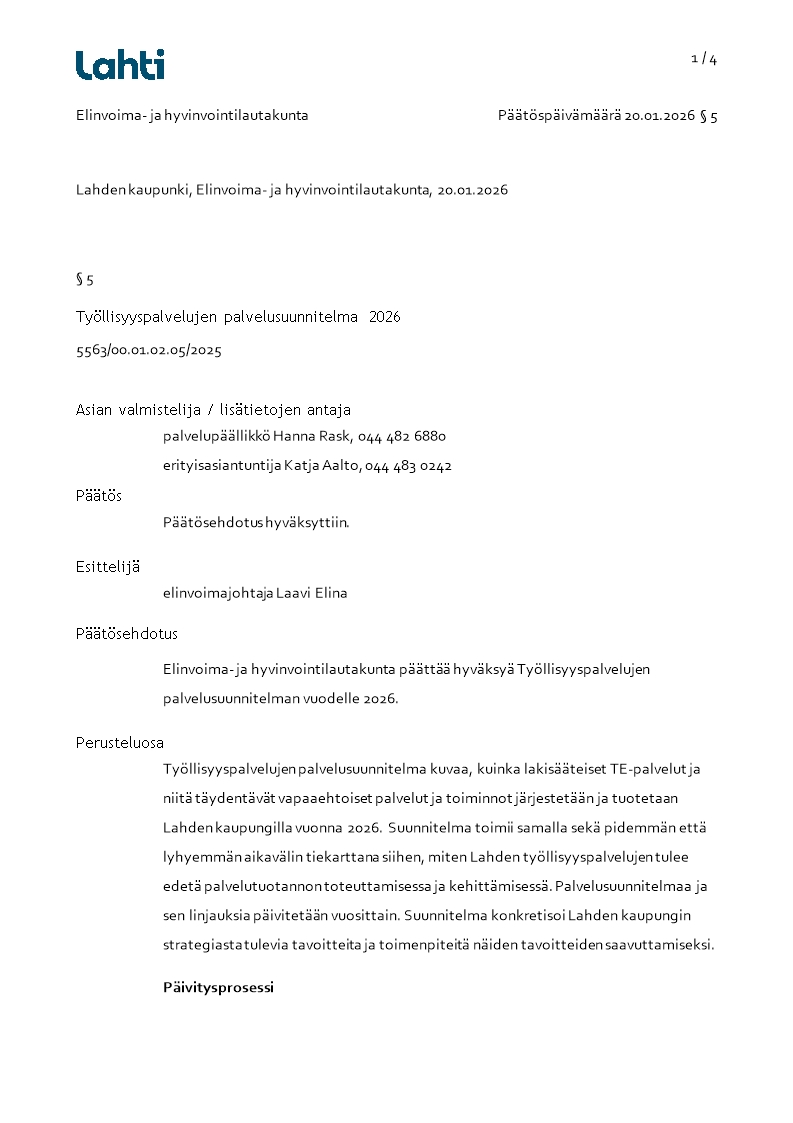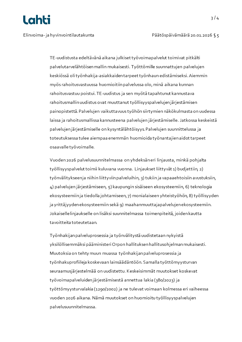 Työllisyyspalvelujen palvelusuunnitelma 2026