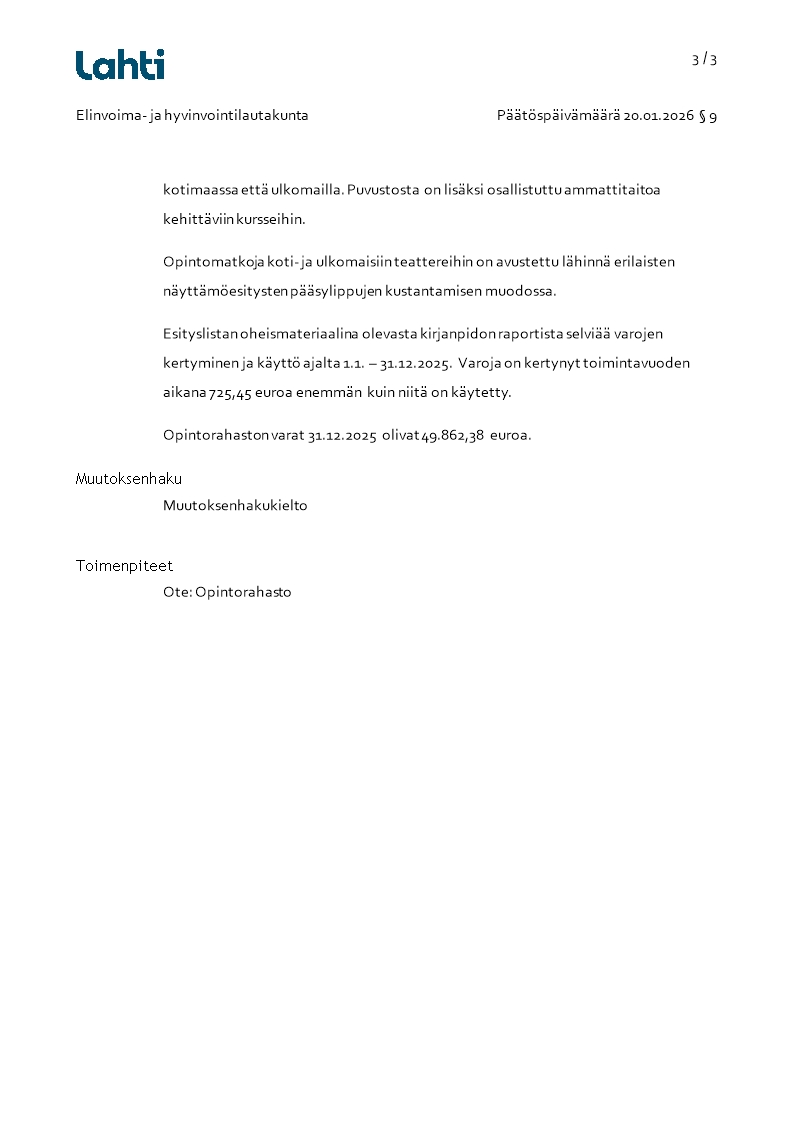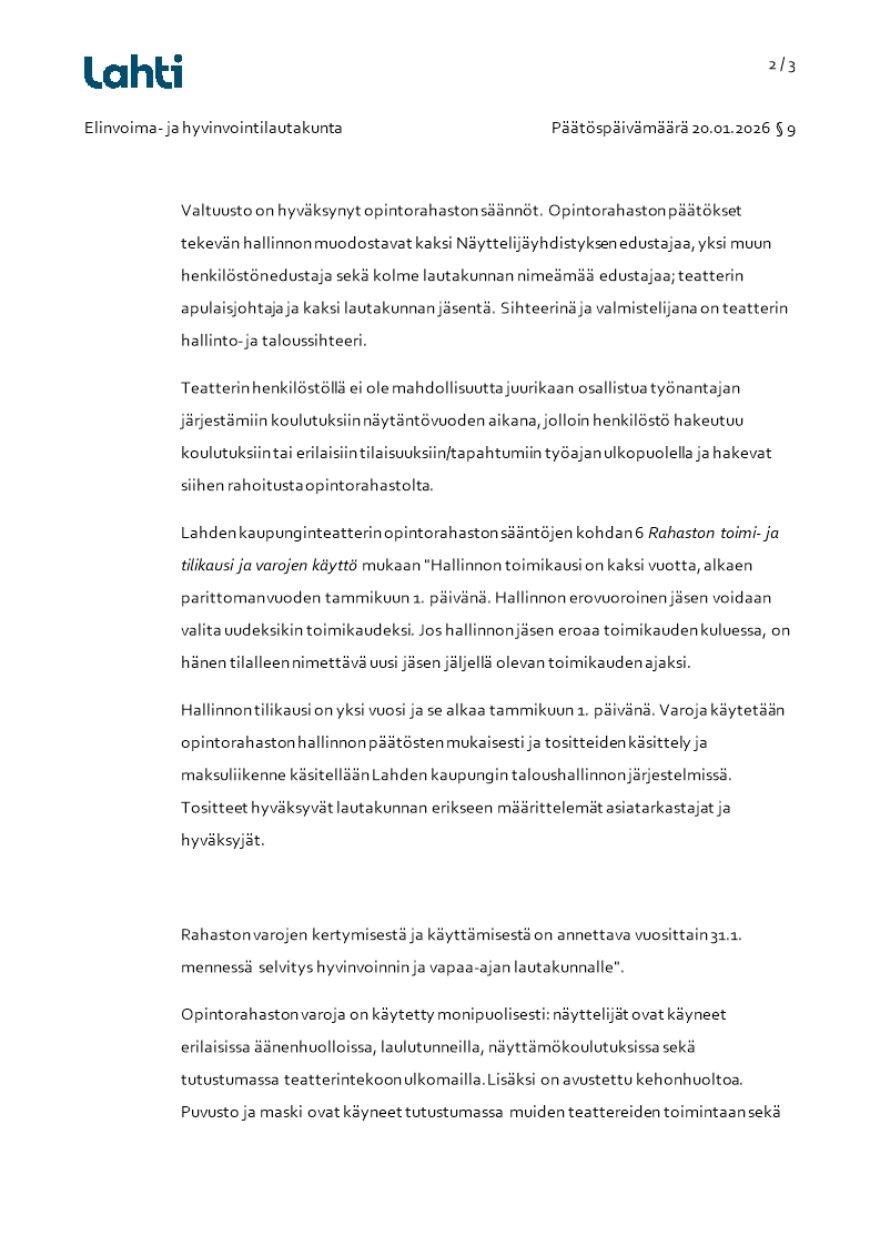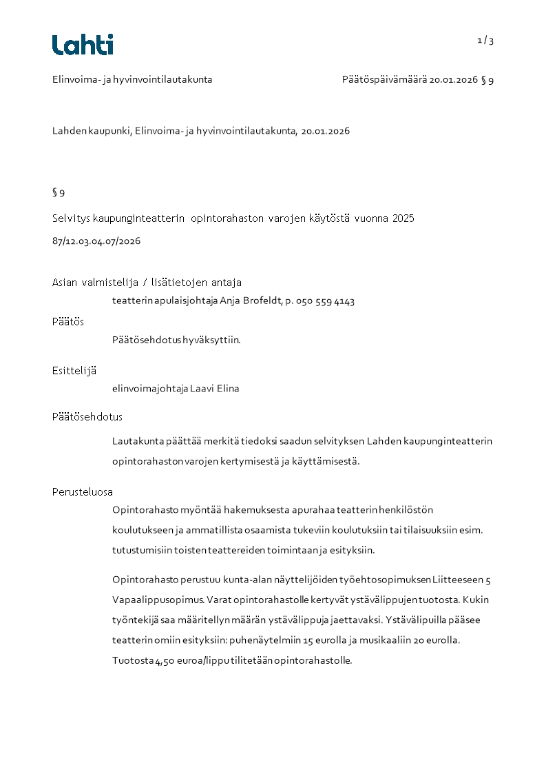 Pöytäkirja 20.01.2026/Pykälä 9