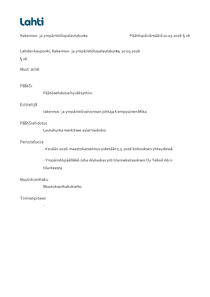 Pöytäkirja 10.03.2026/Pykälä 26