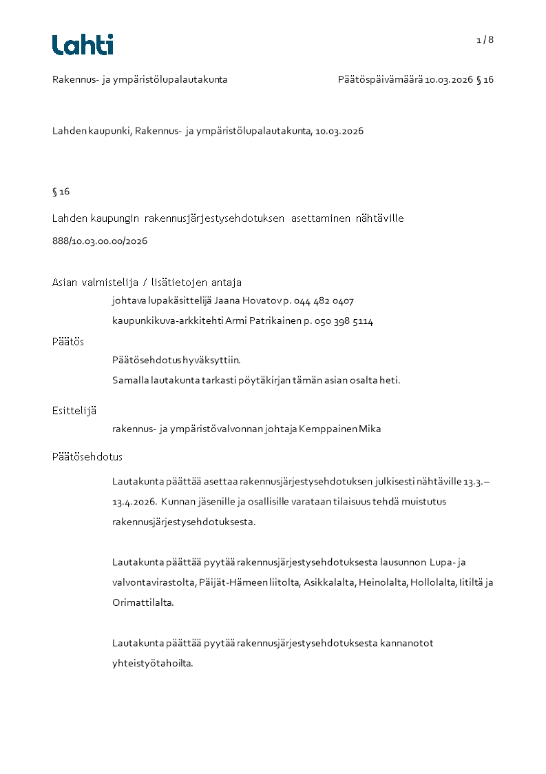 Pöytäkirja 10.03.2026/Pykälä 16
