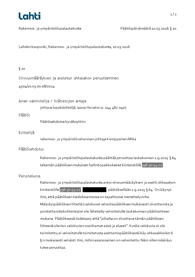 Pöytäkirja 10.03.2026/Pykälä 20