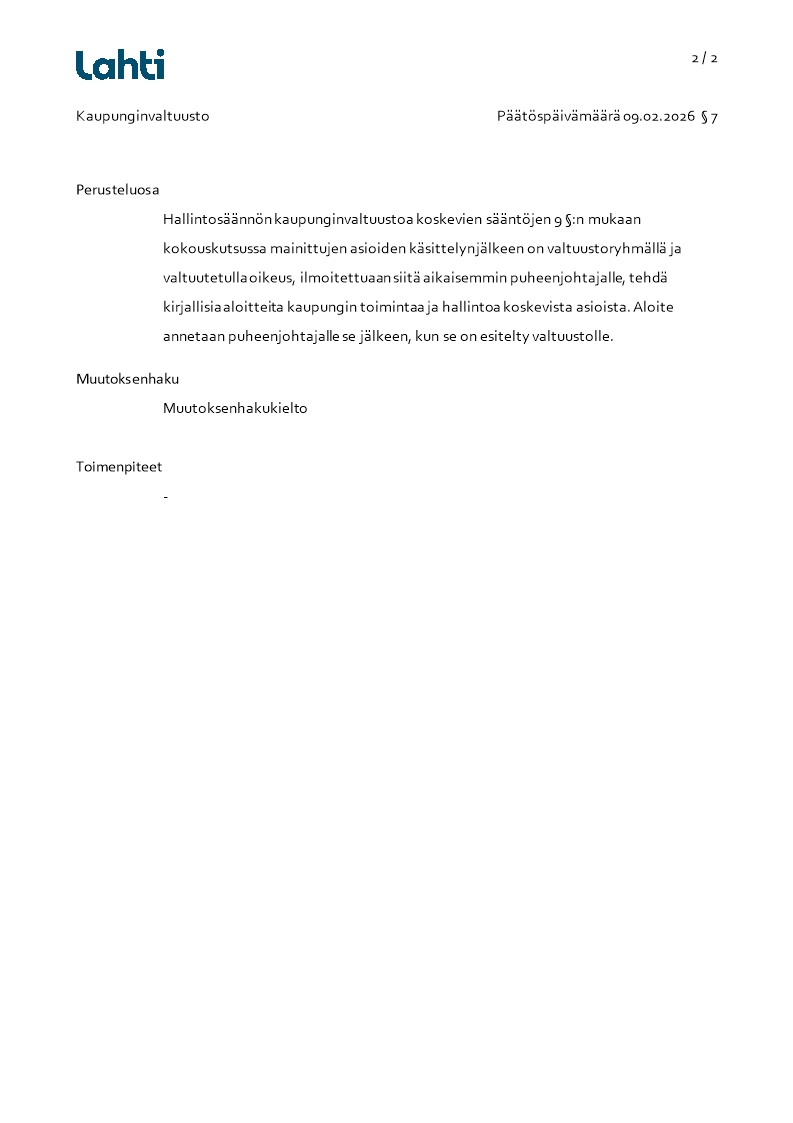 Pöytäkirja 09.02.2026/Pykälä 7