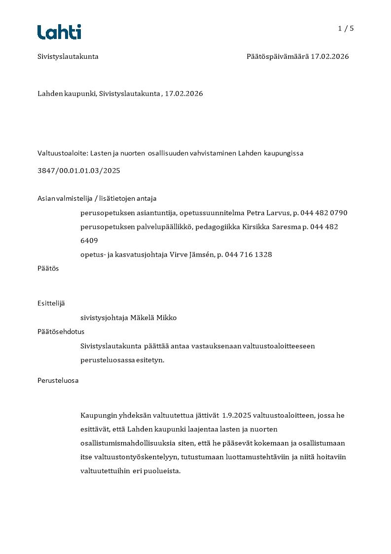 Dynasty tietopalvelu Haku RSS Lahden kaupunki