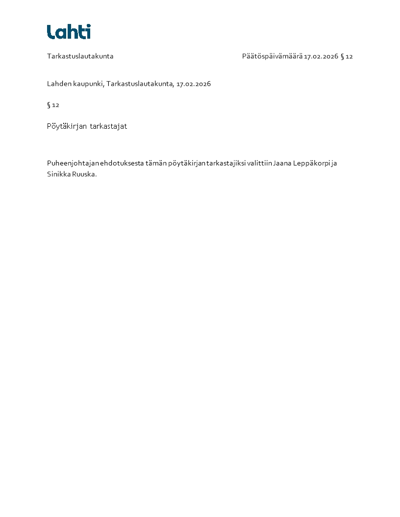 Pöytäkirja 17.02.2026/Pykälä 12