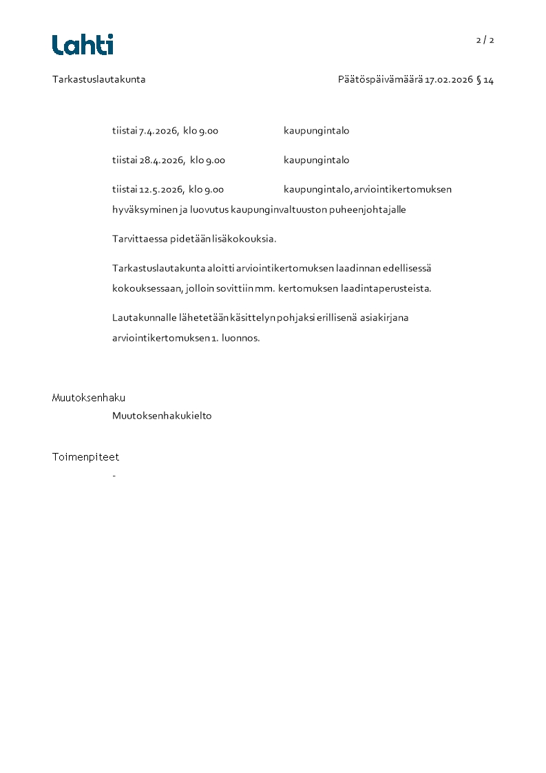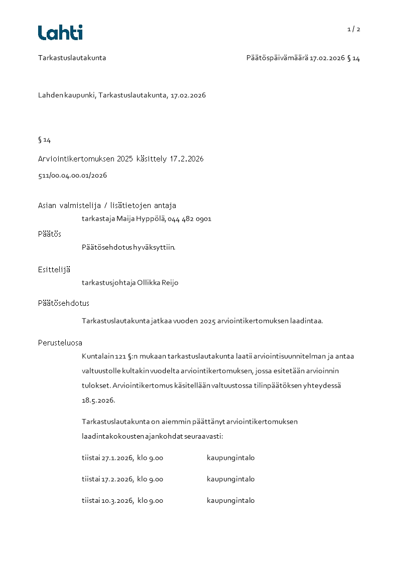 Pöytäkirja 17.02.2026/Pykälä 14