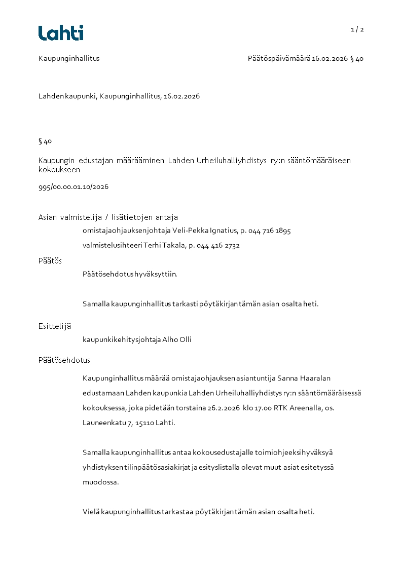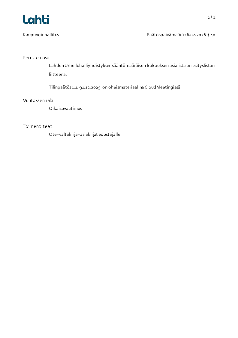 Pöytäkirja 16.02.2026/Pykälä 40