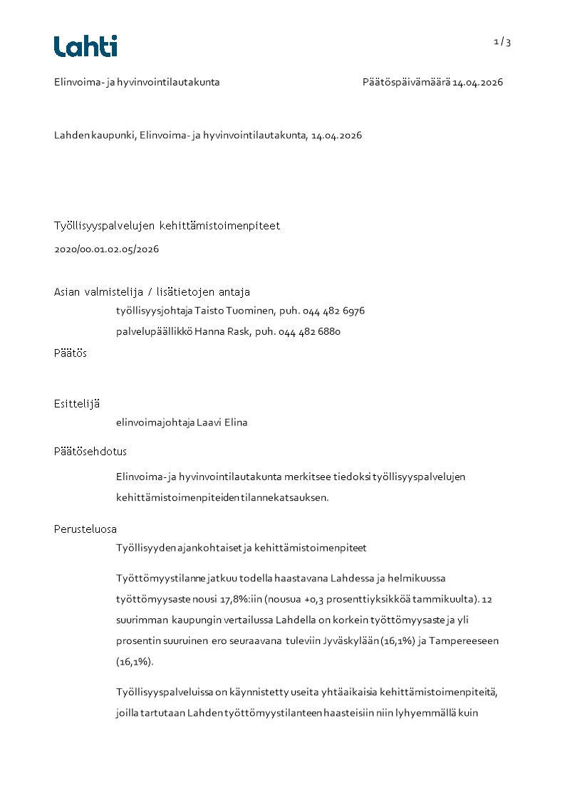 Dynasty tietopalvelu Haku RSS Lahden kaupunki