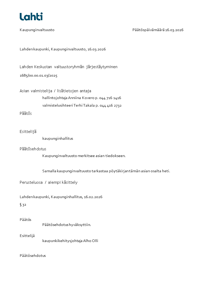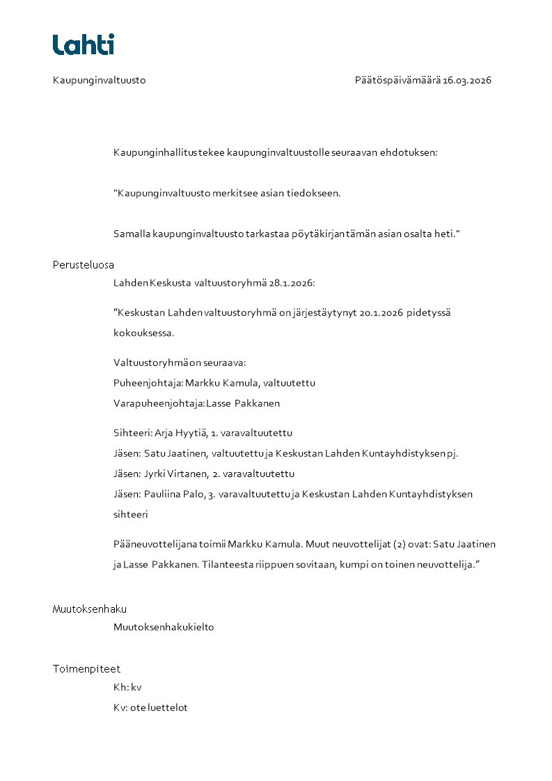 Dynasty tietopalvelu Haku RSS Lahden kaupunki
