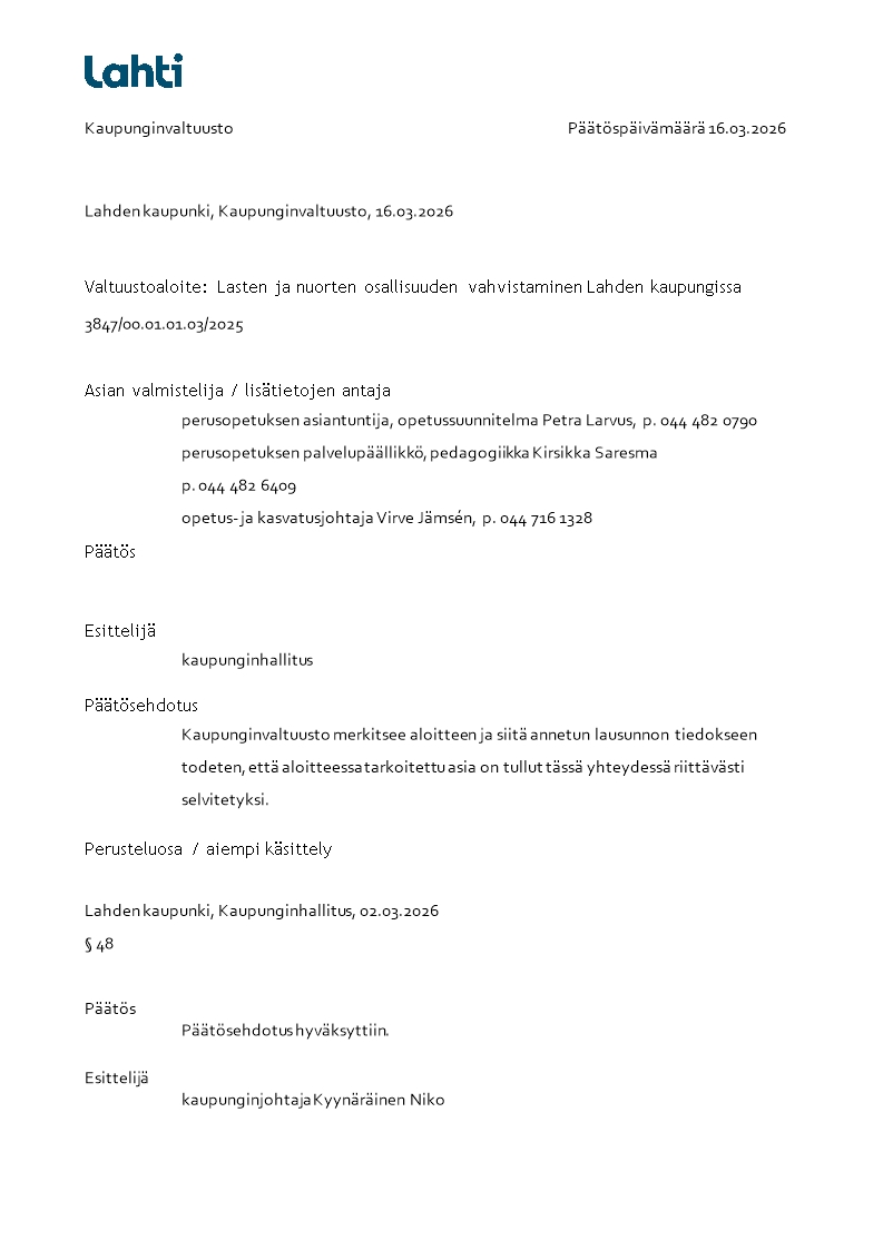 Dynasty tietopalvelu Haku RSS Lahden kaupunki