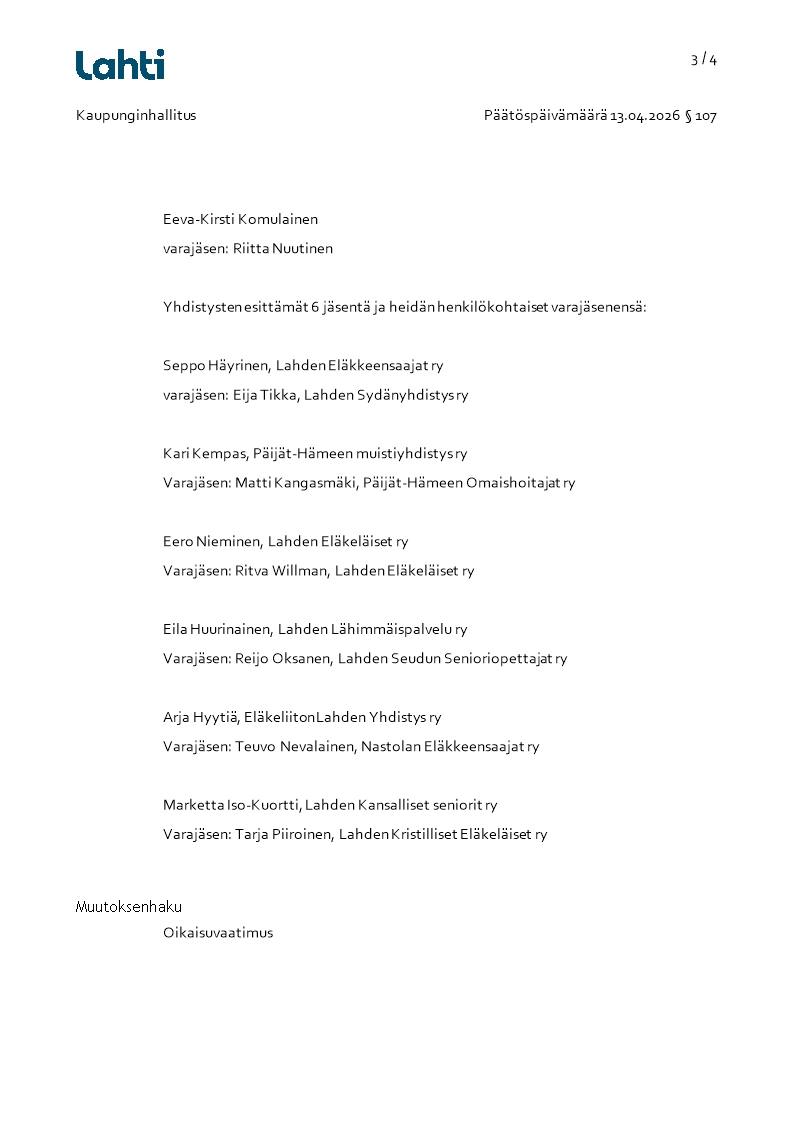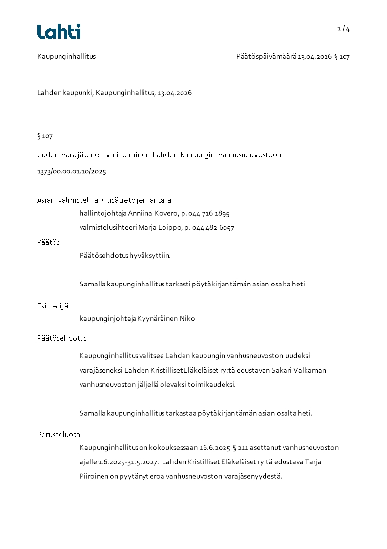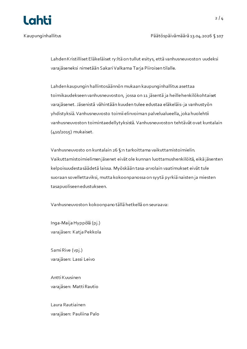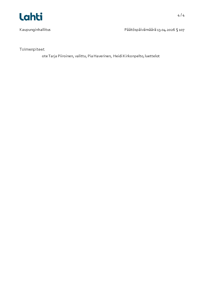Pöytäkirja 13.04.2026/Pykälä 107